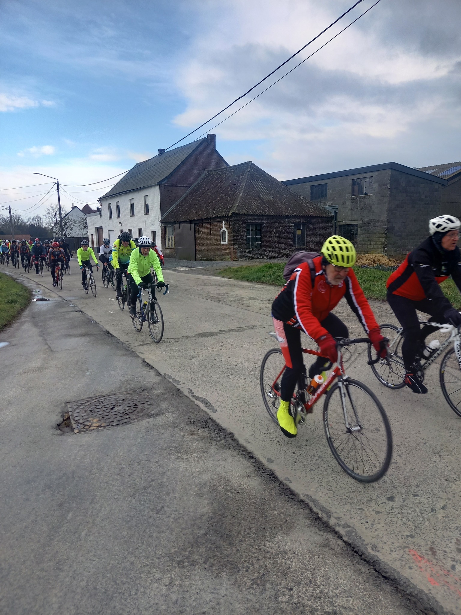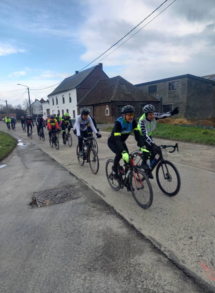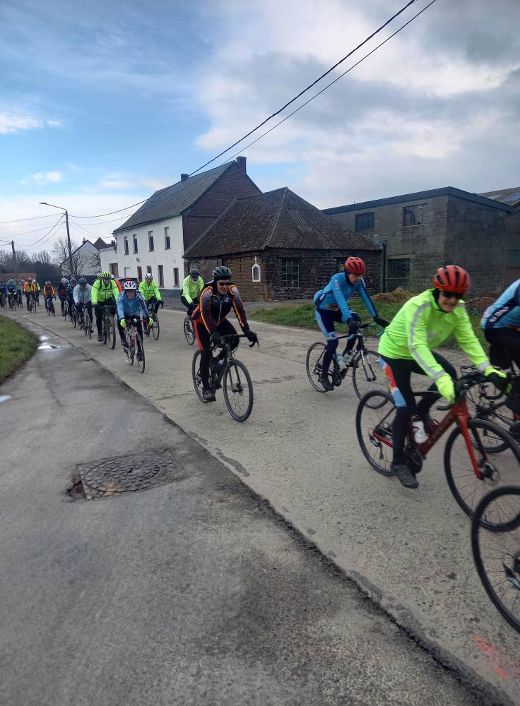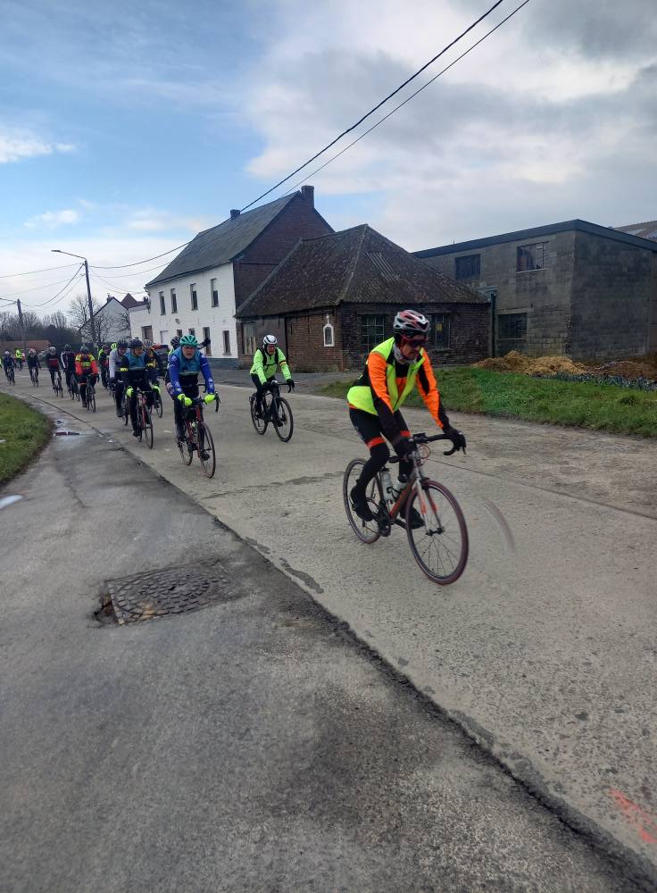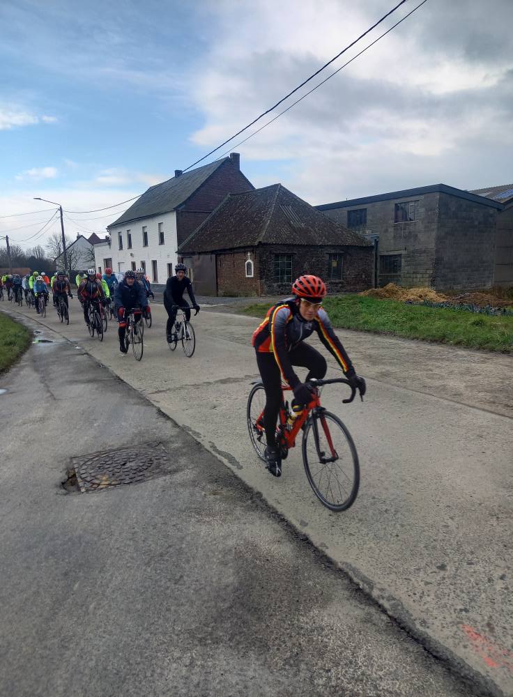 L’avant-dernière progression de l’année (55km), vous étiez 102 cyclos à nous rejoindre ce samedi à 13h30 au point de rendez-vous. Un circuit relevé de quelques difficultés où l’entraide fut au rendez-vous, toujours compliqué du coté de Maulde, Béclers, Mourcourt, Rumillies, Les plus costauds se sont mis au service des moins forts, Bravo à eux! Du côté des ouvreurs, la tâche ne fut pas évidente non plus, un long peloton a remonté après chaque carrefour sécurisé avec ce vent permanent. Chapeau à eux!