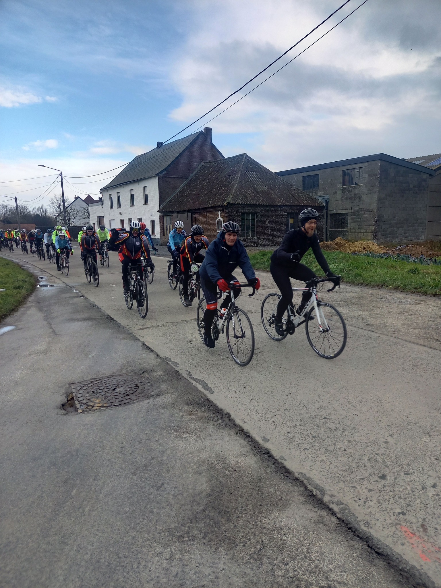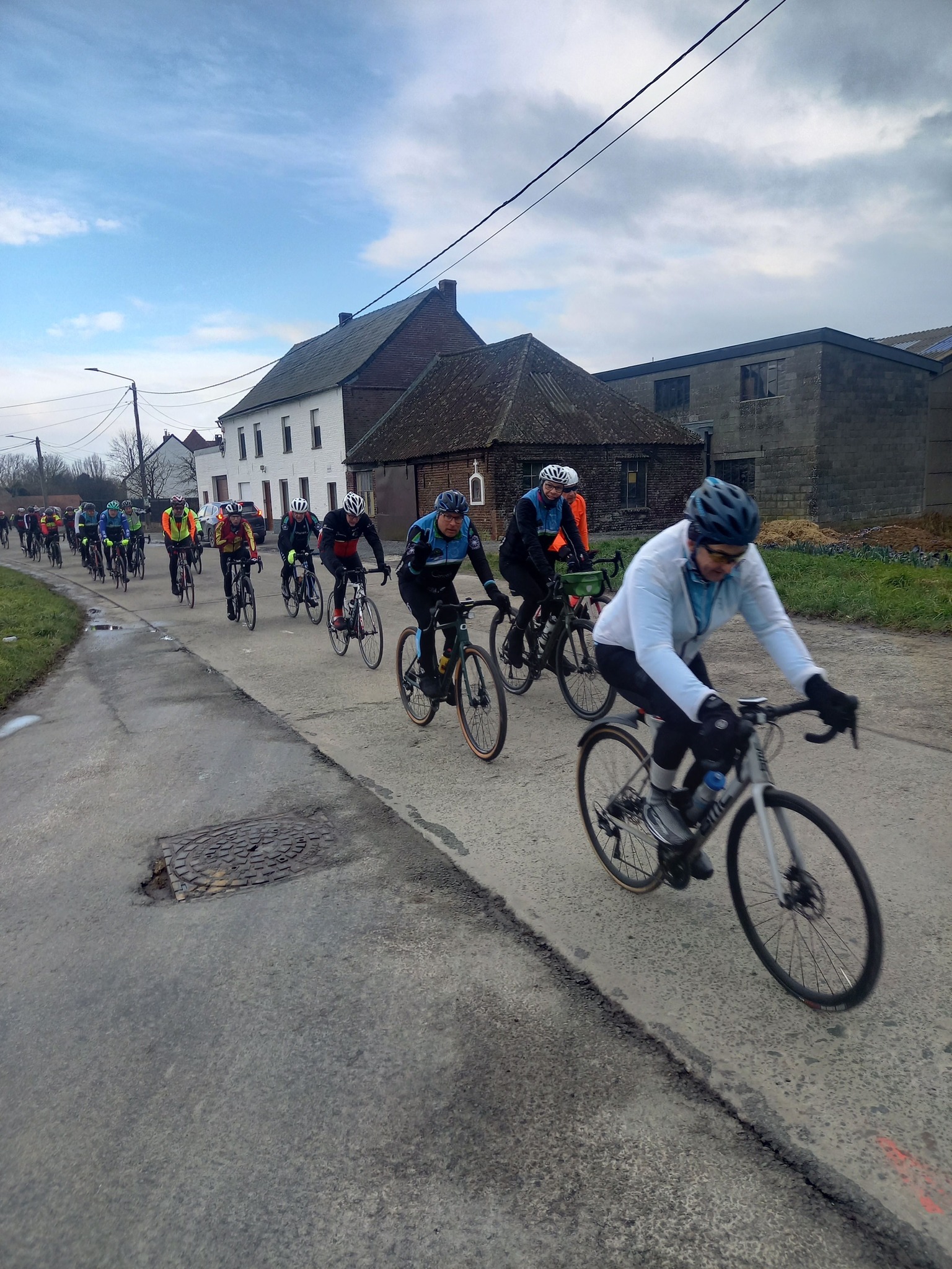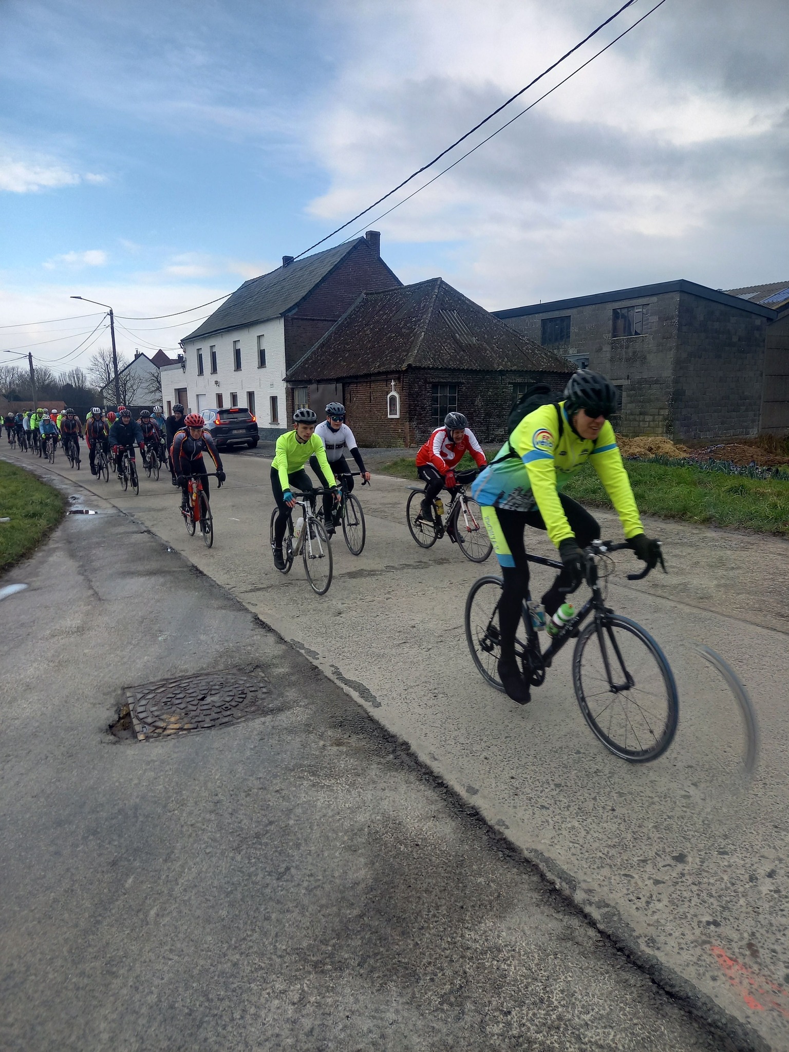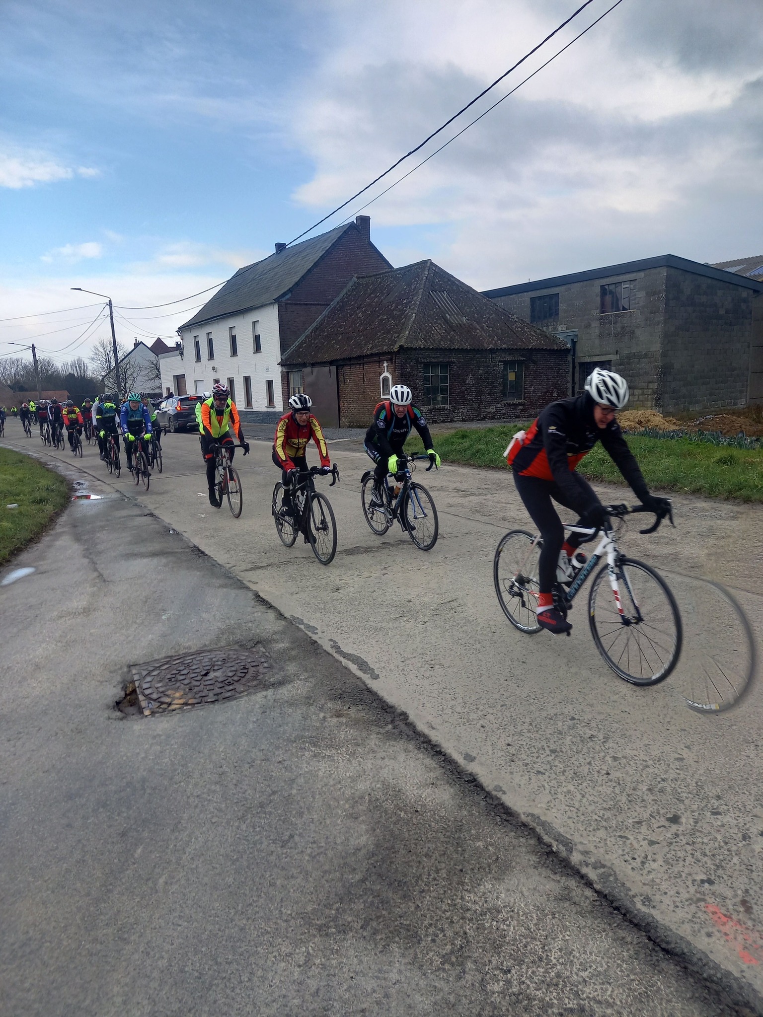 L’avant-dernière progression de l’année (55km), vous étiez 102 cyclos à nous rejoindre ce samedi à 13h30 au point de rendez-vous. Un circuit relevé de quelques difficultés où l’entraide fut au rendez-vous, toujours compliqué du coté de Maulde, Béclers, Mourcourt, Rumillies, Les plus costauds se sont mis au service des moins forts, Bravo à eux! Du côté des ouvreurs, la tâche ne fut pas évidente non plus, un long peloton a remonté après chaque carrefour sécurisé avec ce vent permanent. Chapeau à eux!