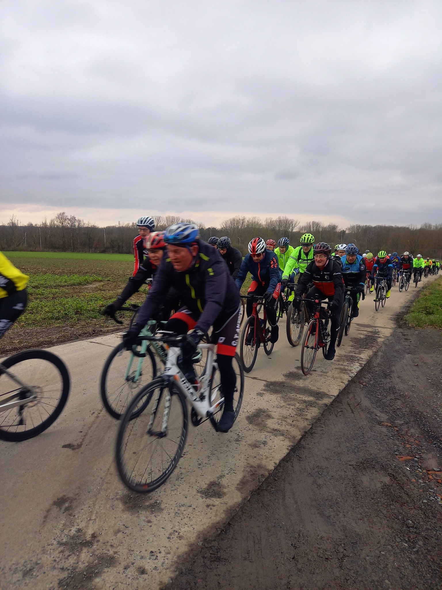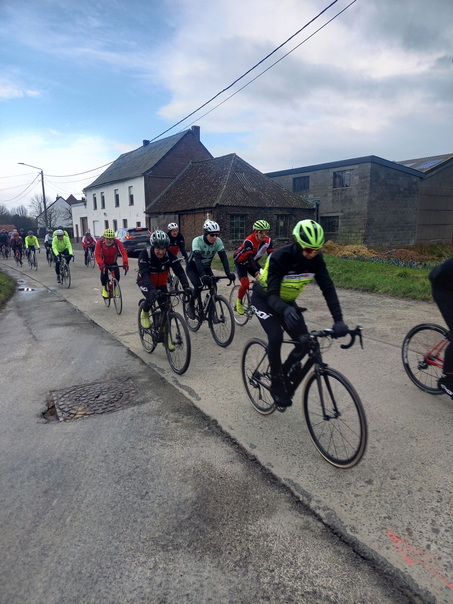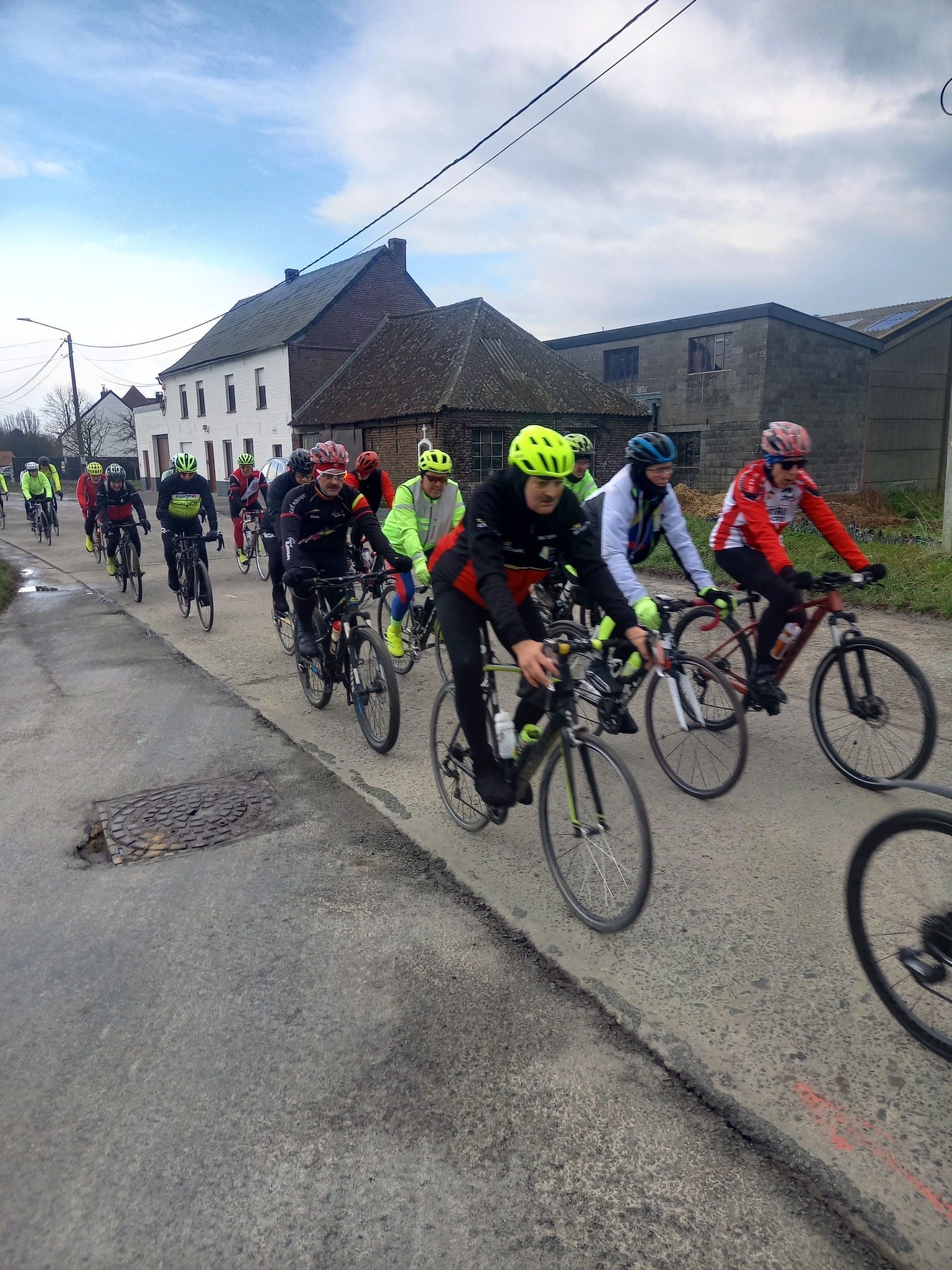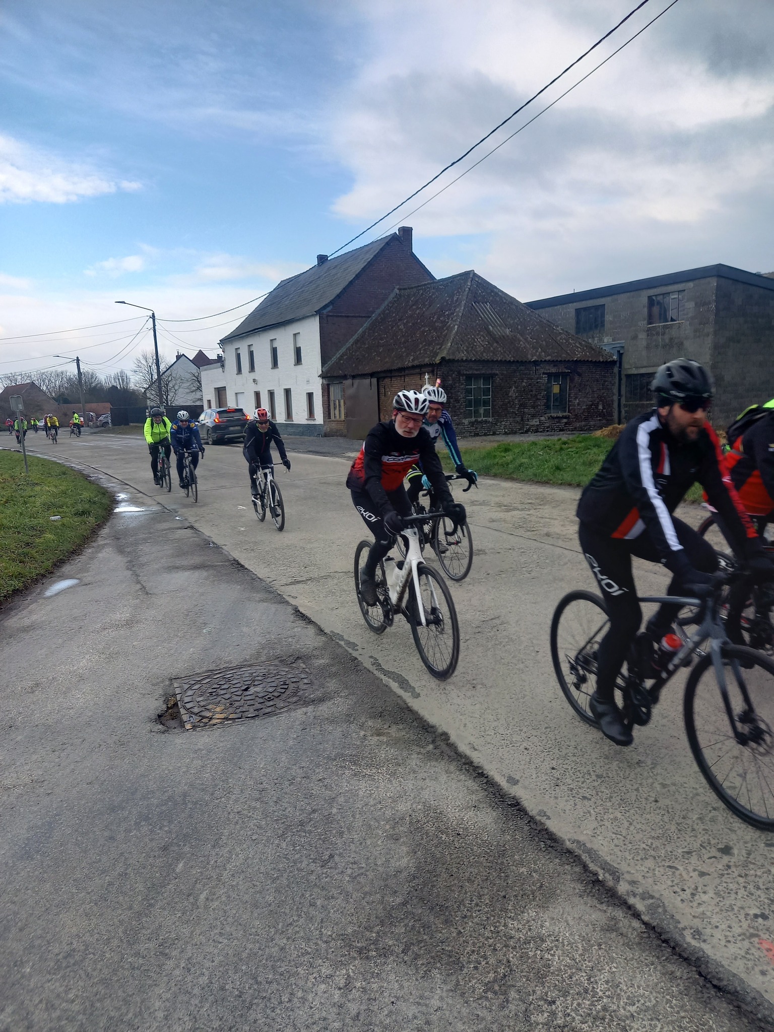 L’avant-dernière progression de l’année (55km), vous étiez 102 cyclos à nous rejoindre ce samedi à 13h30 au point de rendez-vous. Un circuit relevé de quelques difficultés où l’entraide fut au rendez-vous, toujours compliqué du coté de Maulde, Béclers, Mourcourt, Rumillies, Les plus costauds se sont mis au service des moins forts, Bravo à eux! Du côté des ouvreurs, la tâche ne fut pas évidente non plus, un long peloton a remonté après chaque carrefour sécurisé avec ce vent permanent. Chapeau à eux!